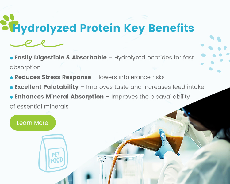 Hydrolyzed animal protein is a highly processed ingredient widely used in pet food to improve digestibility and palatability. Through enzymatic hydrolysis, proteins are broken down into smaller peptides and amino acids, making them easier for pets to absorb.